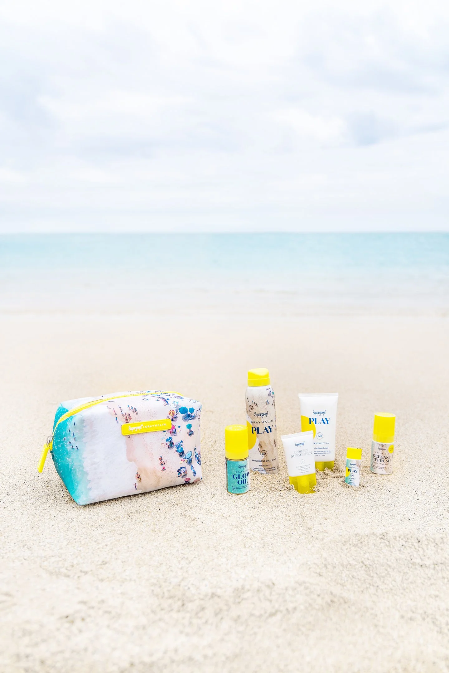 Gray Malin partnered with the prestige skincare brand Supergoop! to develop a playful, limited-edition travel kit featuring one of his iconic aerial beach photographs on pouch as well as on the product labels. From the image selection and package design through the entire sampling process, I worked closely with our partner and the manufacturer to create this beach-inspired gift set.